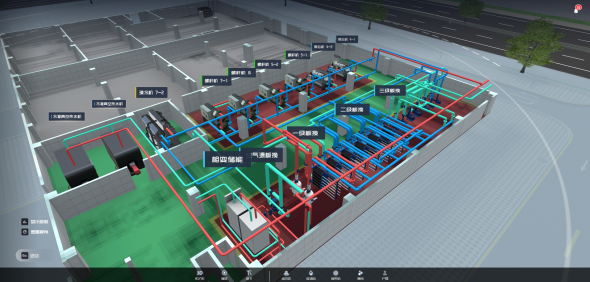設計供熱能力48.1MW,制冷能力48.1MW,可實(shí)現供熱面積106萬(wàn)平米,制冷面積106萬(wàn)平米。項目主要是向科創(chuàng )城核心區提供采暖熱源、冷源及生活熱水。目前接入21個(gè)換熱站。
